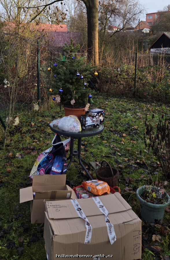 Veliké poděkování opět patří vám všem, kteří jste nezapomněli na naší tradiční sbírku, která vznikla zásluhou předchozí knihovnice paní Drahušky Liptákové. V knihovně se opět sešlo plno potřebných věcí, krmení, hraček, čistící prostředků, textilií - udělaly v útulku velikou vánoční radost.